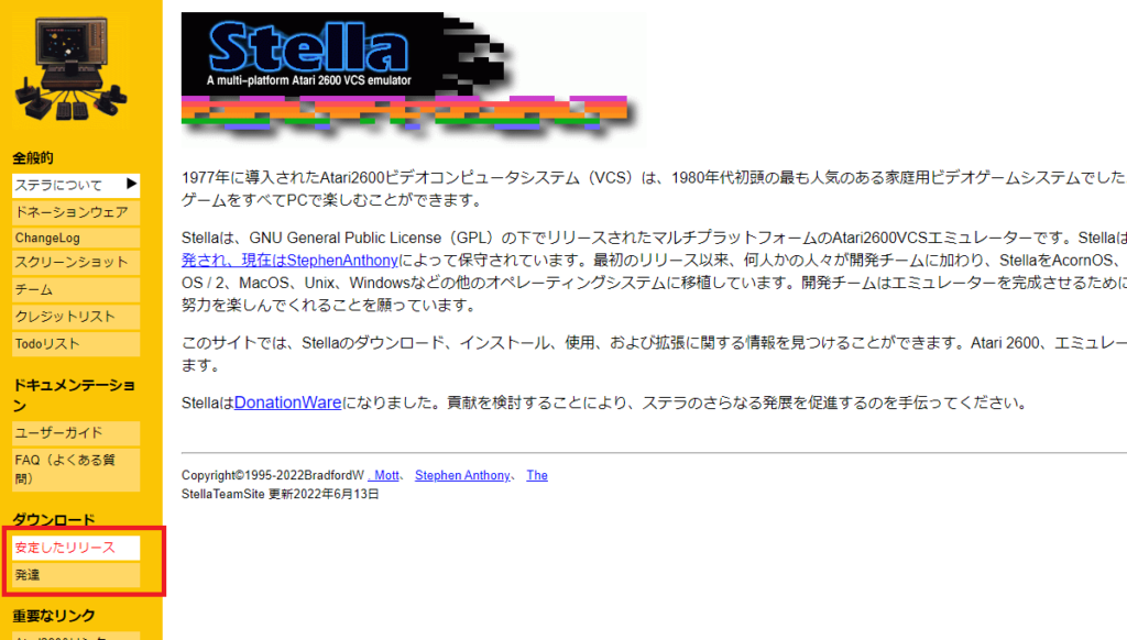 では【Atari2600エミュレーター『Stella』】のダウンロード設定を行いましょう。